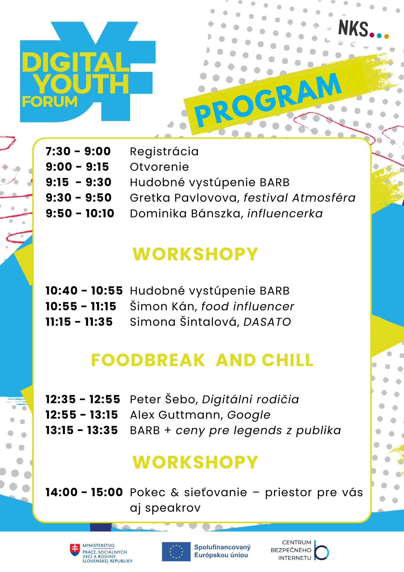 Pripravujeme inšpiratívne prednášky, živé diskusie s hosťami, interaktívne zóny, ale aj príspevky influencerov, ktorí prehovoria o tom, ako vyzerá digitálny svet z ich pohľadu. Bude to deň plný zážitkov, nových pohľadov a zábavy.